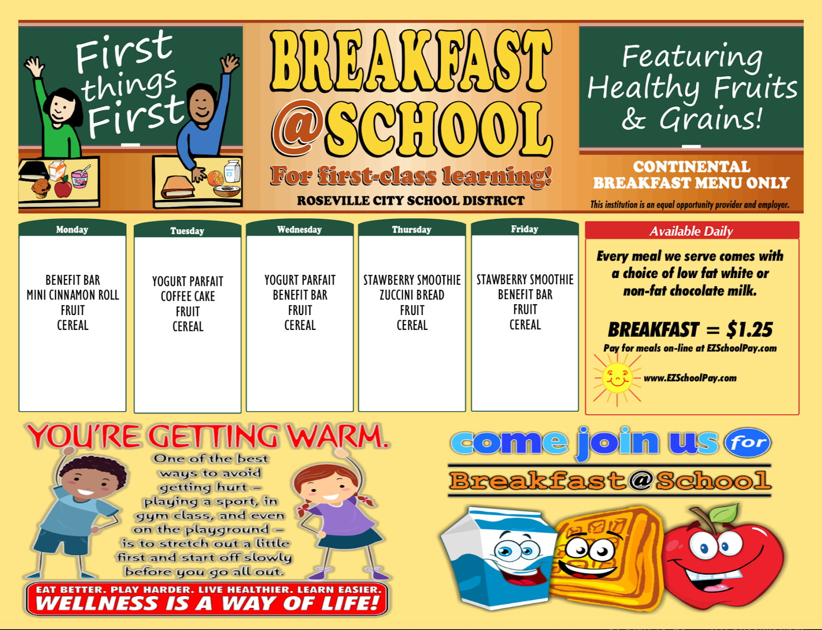 Reminder: We offer breakfast at 8:30 am for $1.25 in the Multi-purpose room each morning.